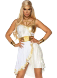 Disfraz de reina del Nilo que incluye 3 piezas, Catsuit dorado brillante, vestido a rayas con un intrincado cuello, joya y tocado drapeado a juego. |